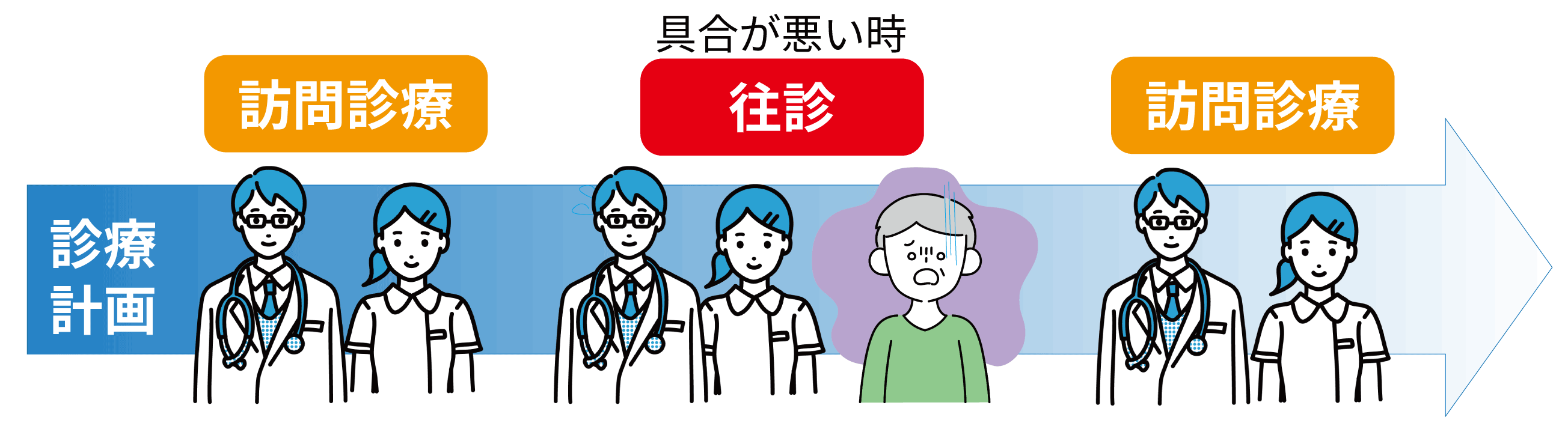 具合の悪いとき、必要なとき、患者様の求めに応じて臨時的にお伺いいたします。